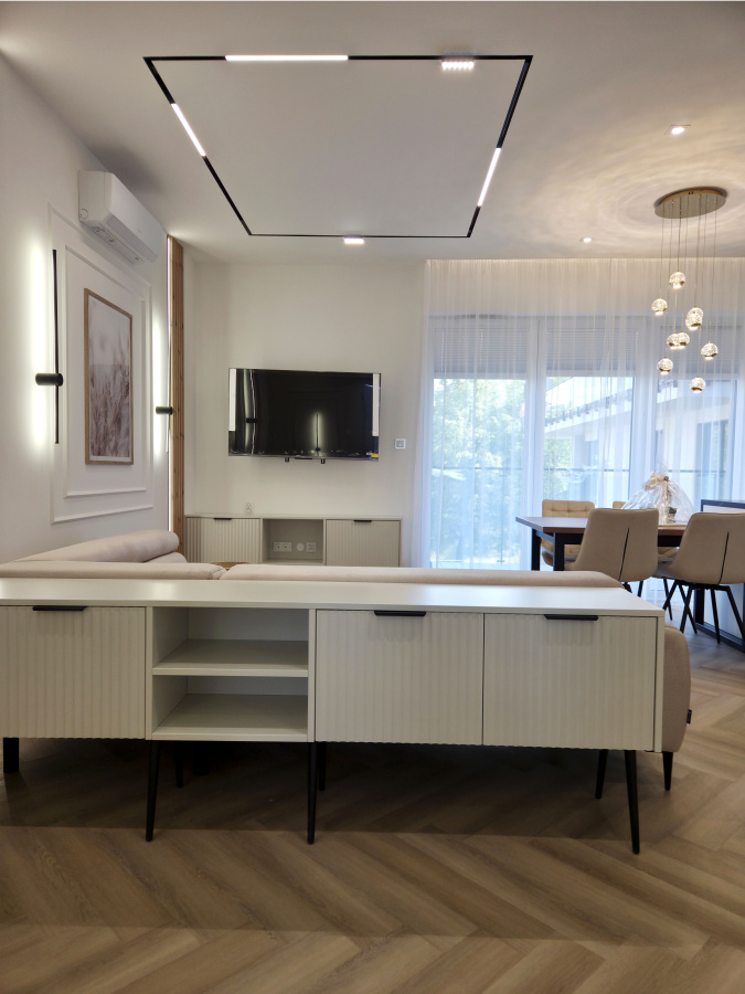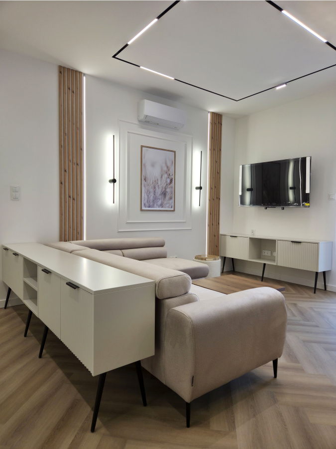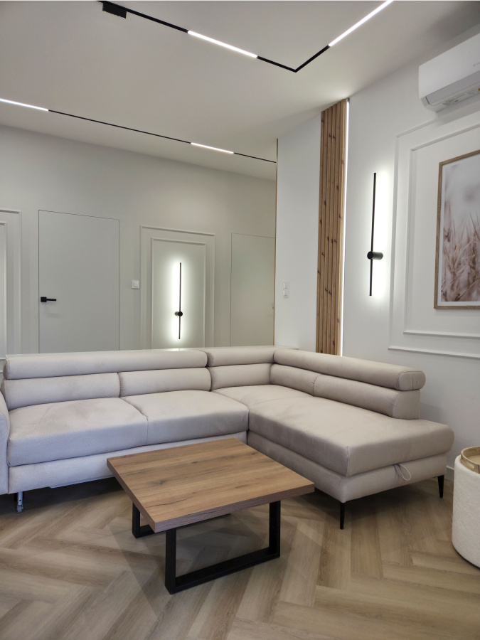 Efektem jest wnętrze, które łączy nowoczesną estetykę z wygodą, tworząc przestrzeń pełną klasy i ponadczasowego stylu.
