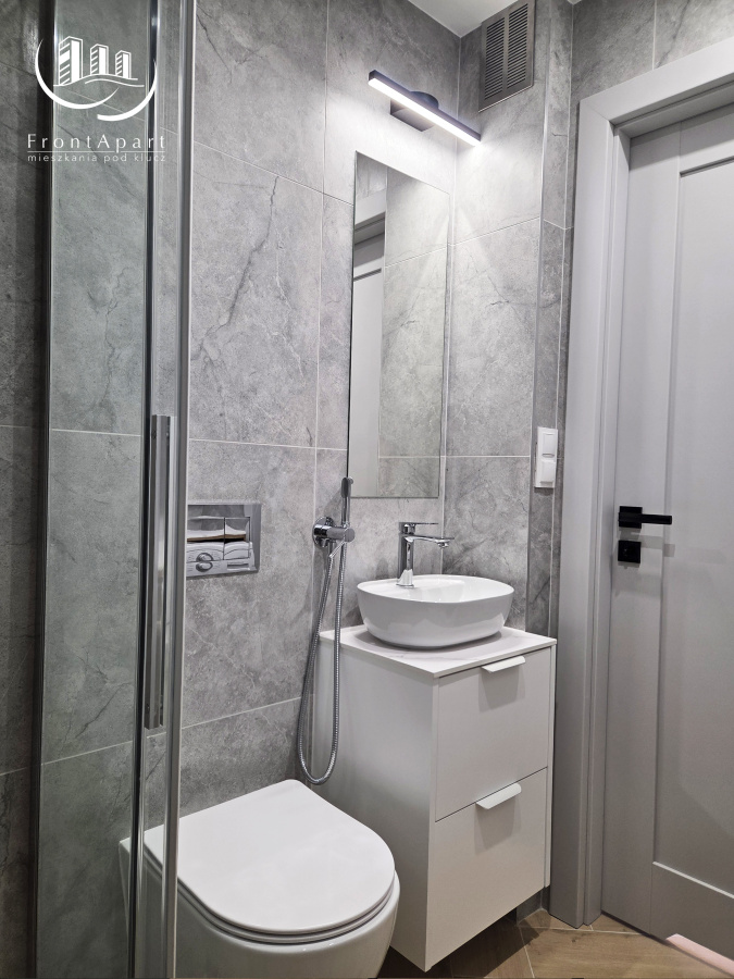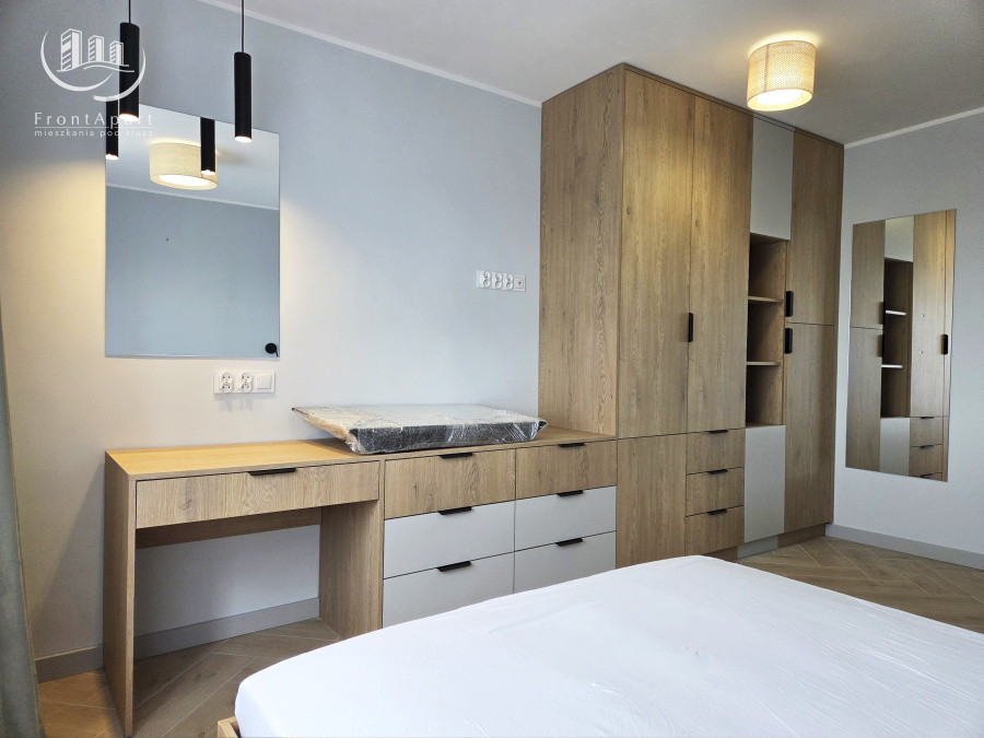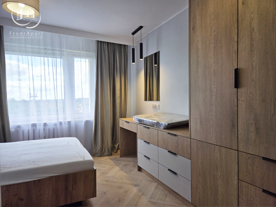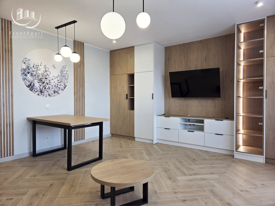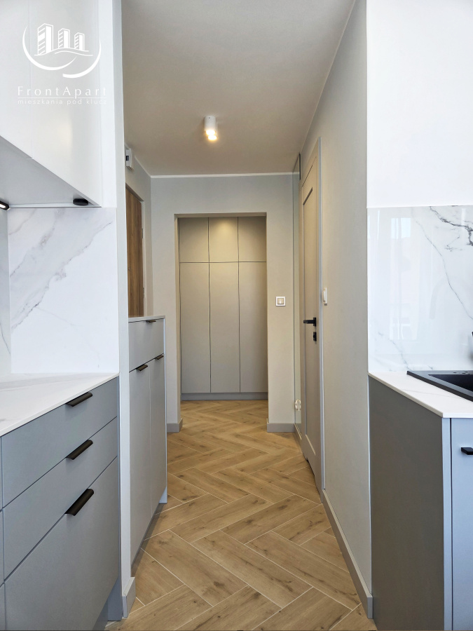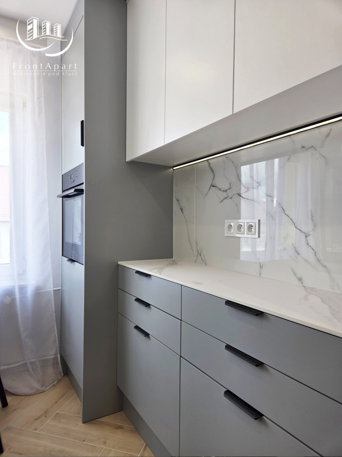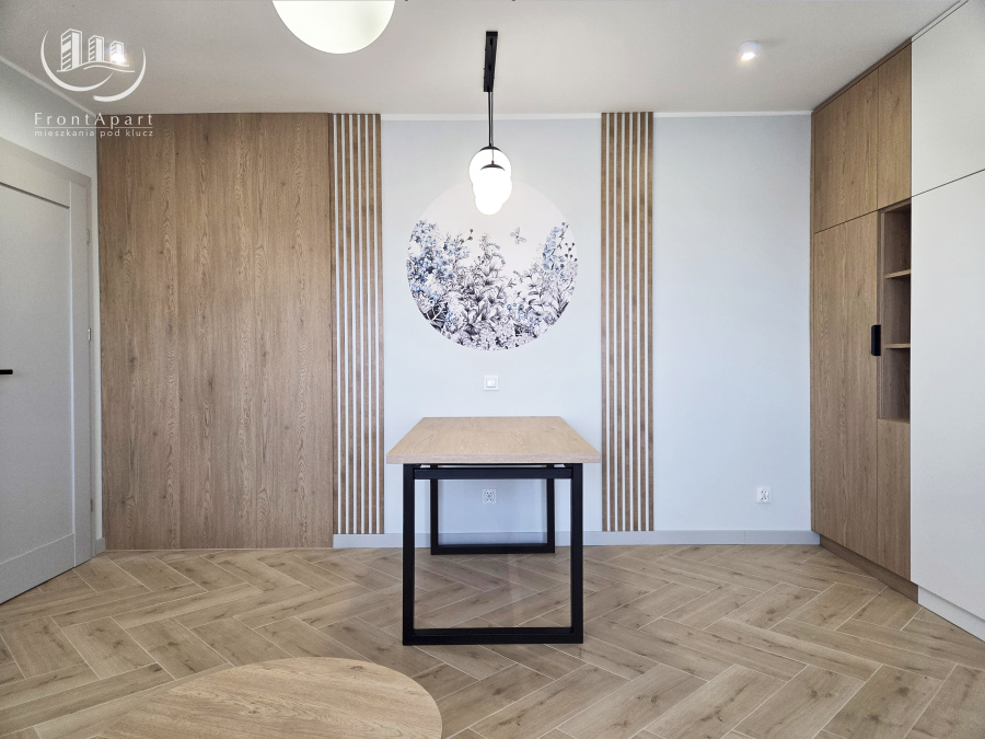 Ta realizacja pokazuje, jak ważne w aranżacji jest światło. Duże okna, jasne kolory i starannie dobrane oświetlenie sprawiają, że mieszkanie wykończone pod klucz przez Front Apart jest przestronne, nowoczesne i pełne energii. To wnętrze gotowe do życia – od pierwszego dnia po odbiorze.