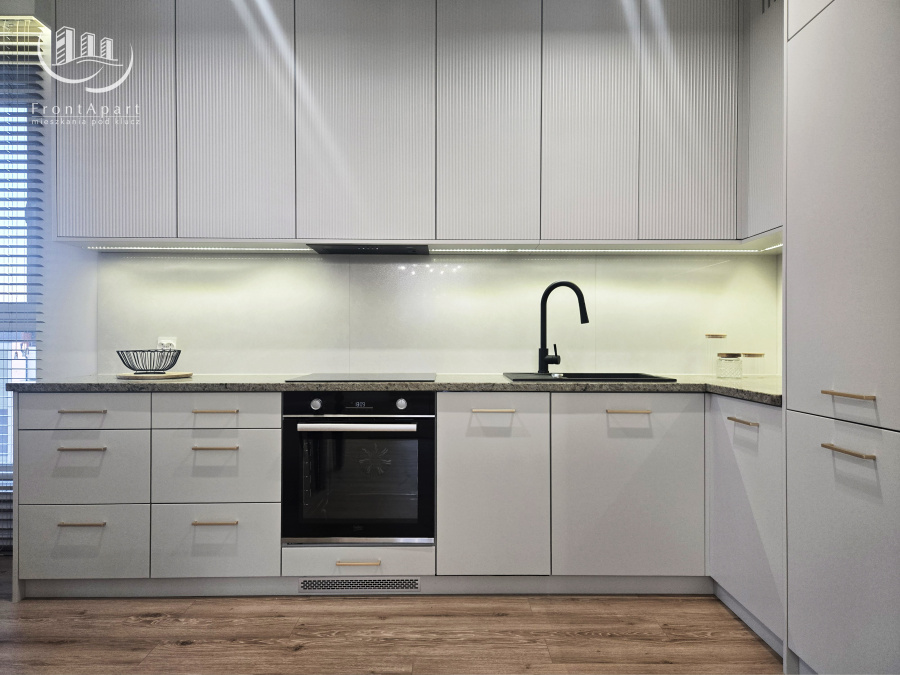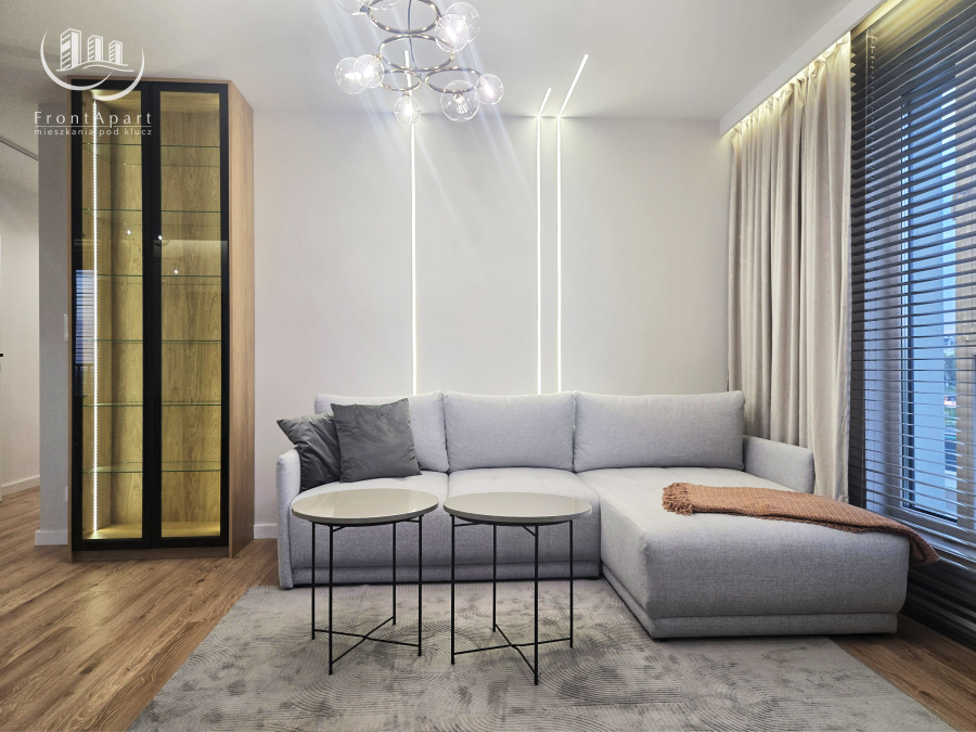 Ta realizacja to przykład, jak z pomocą Front Apart można stworzyć wnętrze idealne dla całej rodziny. Ciepłe kolory, naturalne drewno i starannie dobrane oświetlenie sprawiają, że mieszkanie emanuje domową atmosferą.