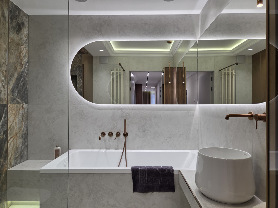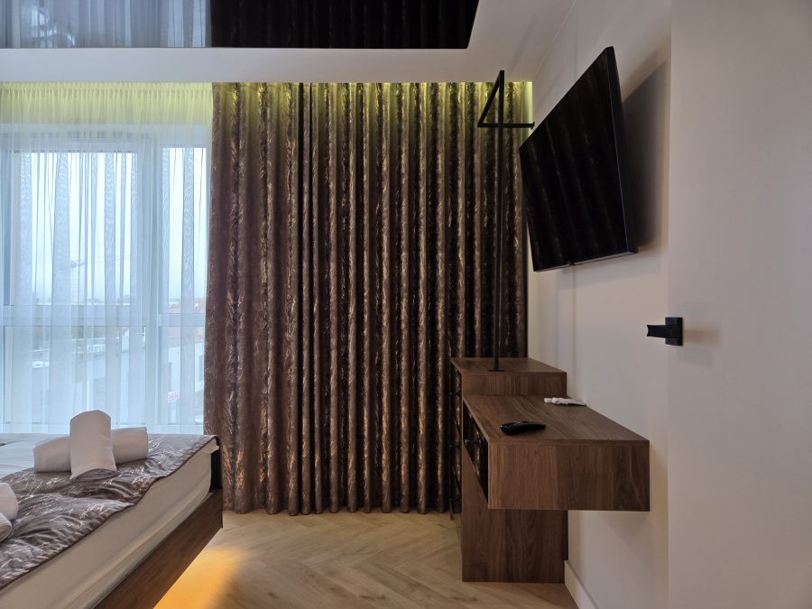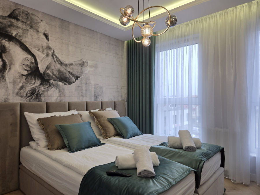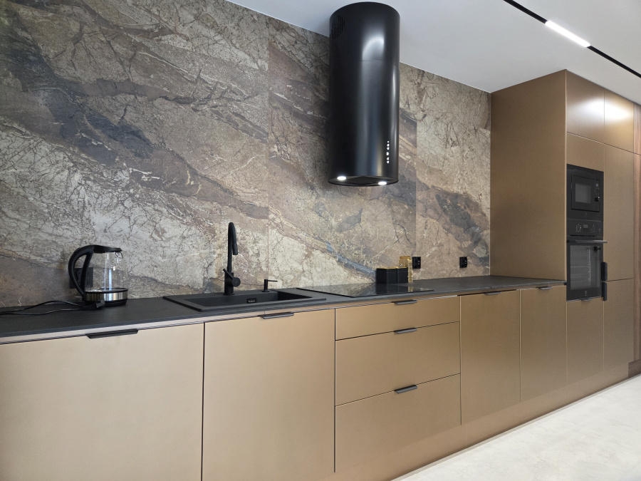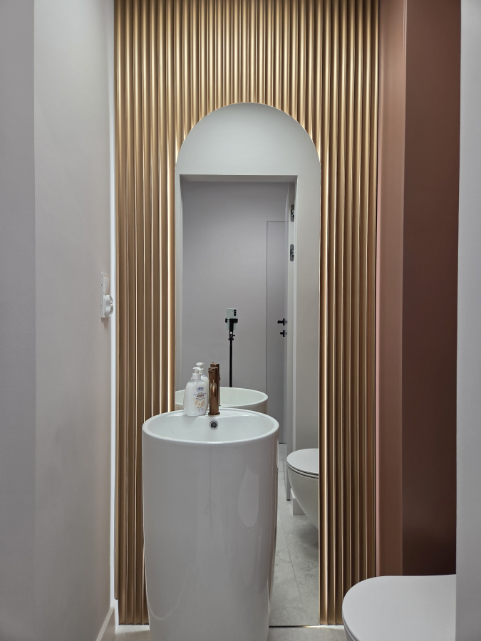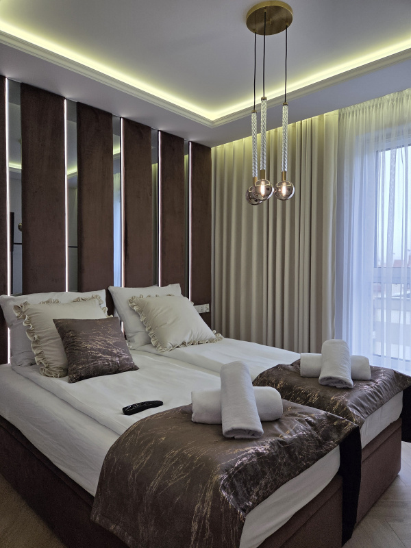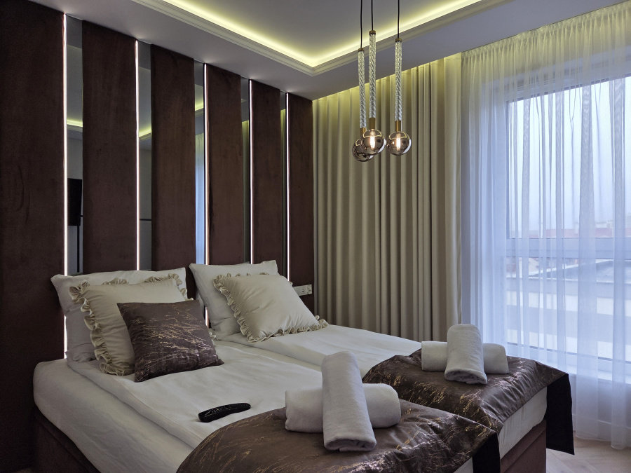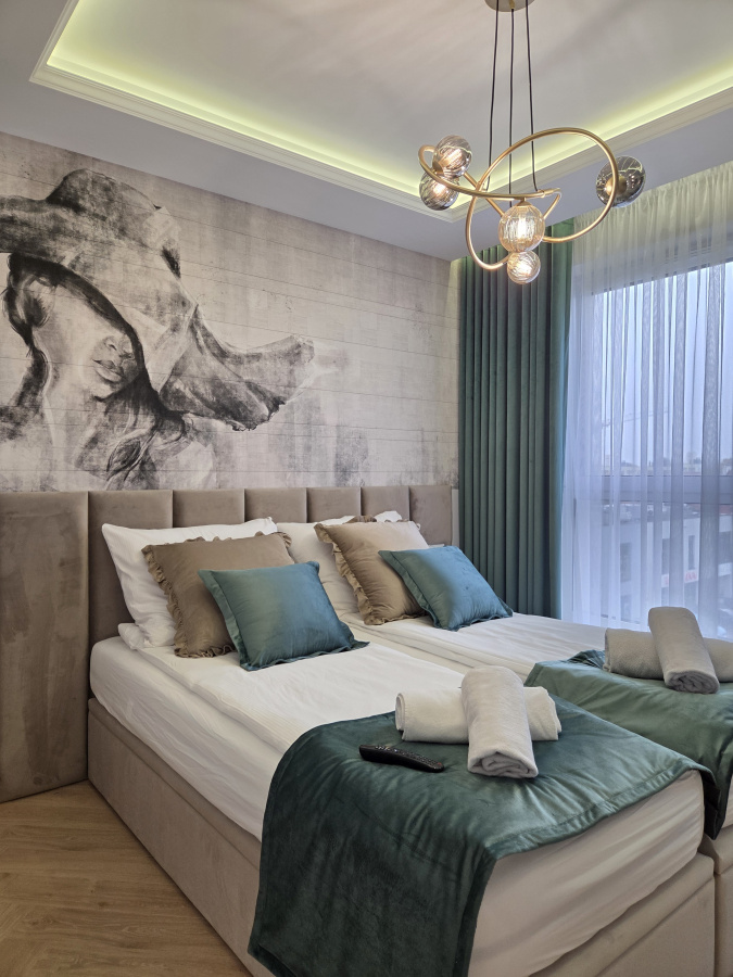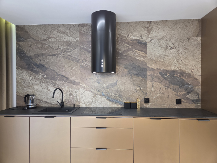 Ta wyjątkowa realizacja Front Apart to ponad 90 metrów kwadratowych elegancji, komfortu i dopracowanego designu. Mieszkanie zostało wykończone pod klucz w standardzie premium, z wykorzystaniem naturalnego kamienia, dekoracyjnych luster oraz ozdobnych płyt ściennych, które nadają wnętrzu wyjątkowej głębi i klasy.