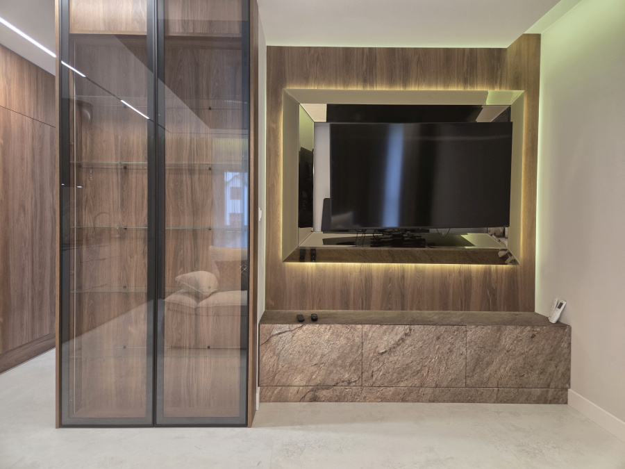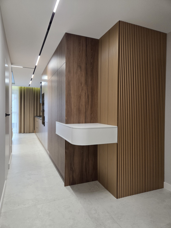 Każdy element tego wnętrza został zaplanowany z dbałością o detal - od harmonijnych kolorów po perfekcyjne wykończenie - tworząc spójną, elegancką i funkcjonalną całość.